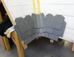 Sur 2 jours, 13 candidats ont dû réaliser deux ouvrages dans la journée, une noue à fendis à deux tranchis en ardoise naturelle et une boîte à eau en plomb. Chaque candidat a également soutenu un dossier à l’oral pendant 1heure devant un jury de professionnel.