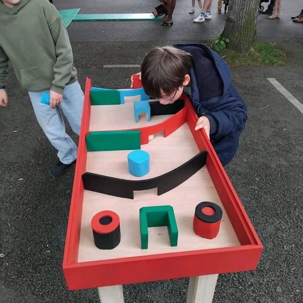 Ils ont ainsi participé, en lien avec l’ESAT de Vierzon, à la réalisation de jeux en bois. Réalisation qui a été accompagnée par l’illustrateur Vincent Mathy. Ces jeux, trois mini-golfs, ont été présentés les 8 et 9 juin 2023 dans le cadre de la « Fancy Fair » (kermesse) organisée sur le parvis de la MCB.