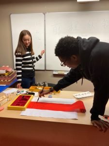 A l’occasion, du nouvel an chinois, lors de l’étude du soir, l’assistante d’éducation initie les élèves internes à la culture et à l’écriture chinoise.